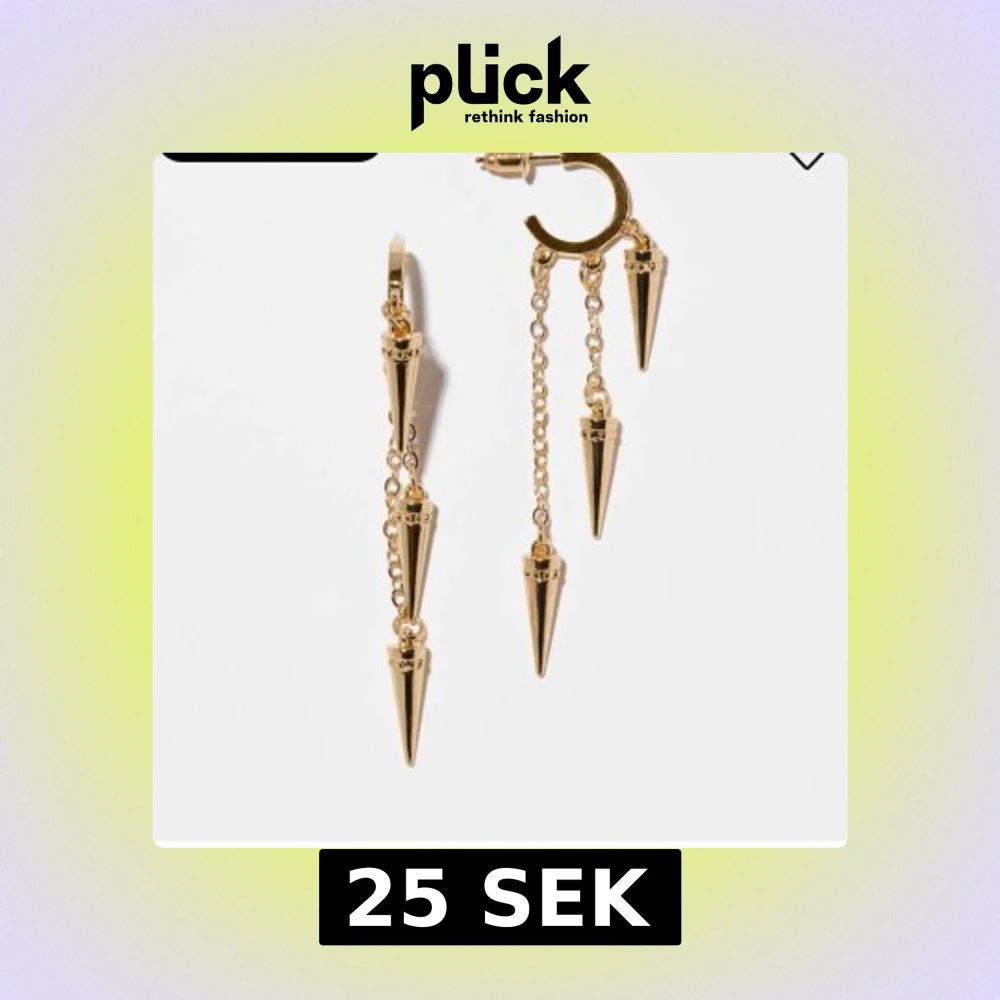 Säljer ett par coola guldörhängen med kedjor och konformade hängen. Örhängena har flera kedjor i olika längder och varje kedja avslutas med ett spetsigt konformat hänge. Perfekt för dig som vill sticka ut med din stil!