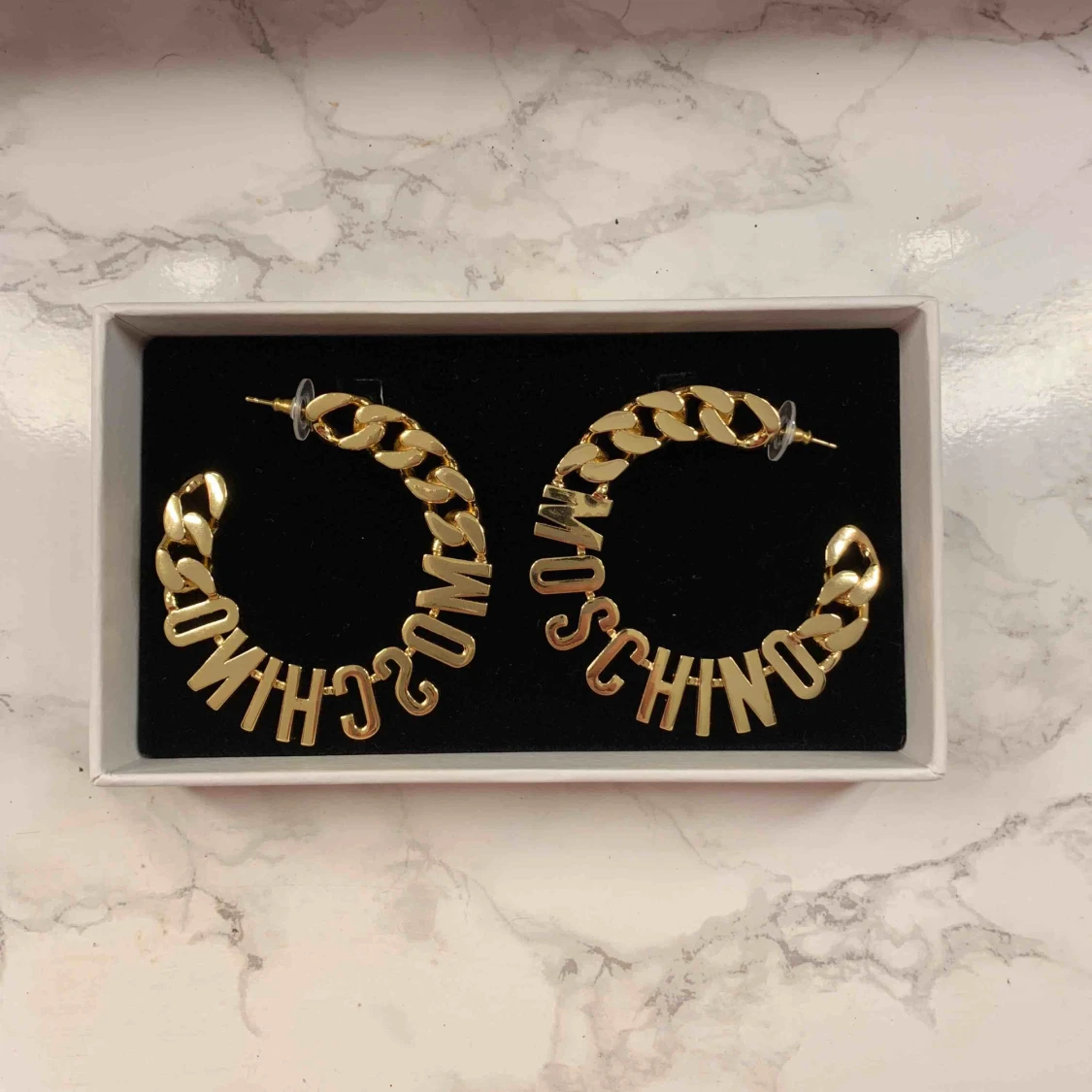 Helt oanvända, slutsålda H&Moschino örhängen från H&M’s senaste kollektion med Moschino! Nyskick, säljer pga får ej användning av dem så hoppas någon annan kan få det istället💕 Nypris är 399kr