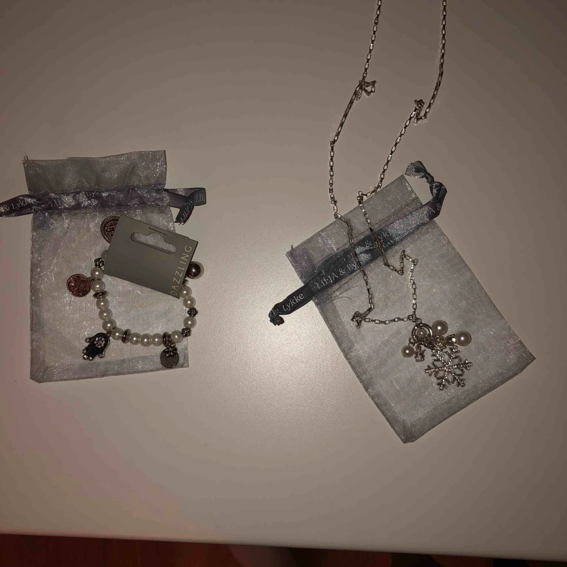 Säljer ett armband och ett halsband i silver. Köpte armbandet för 89kr och halsbandet för 129kr. Säljer för 20kr/st eller båda för 30kr (+frakt) ARMBAND SÅLD!