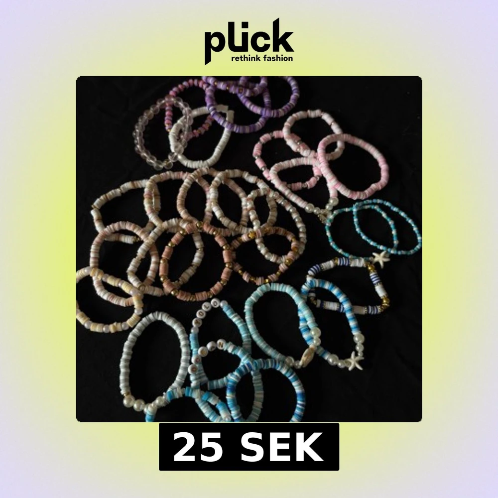 Säljer armband i pastellfärger som blått, rosa, lila, beige och vitt. Vissa armband har bokstavspärlor, guldiga detaljer, snäckor eller stjärnformade pärlor. Perfekt inför sommaren!