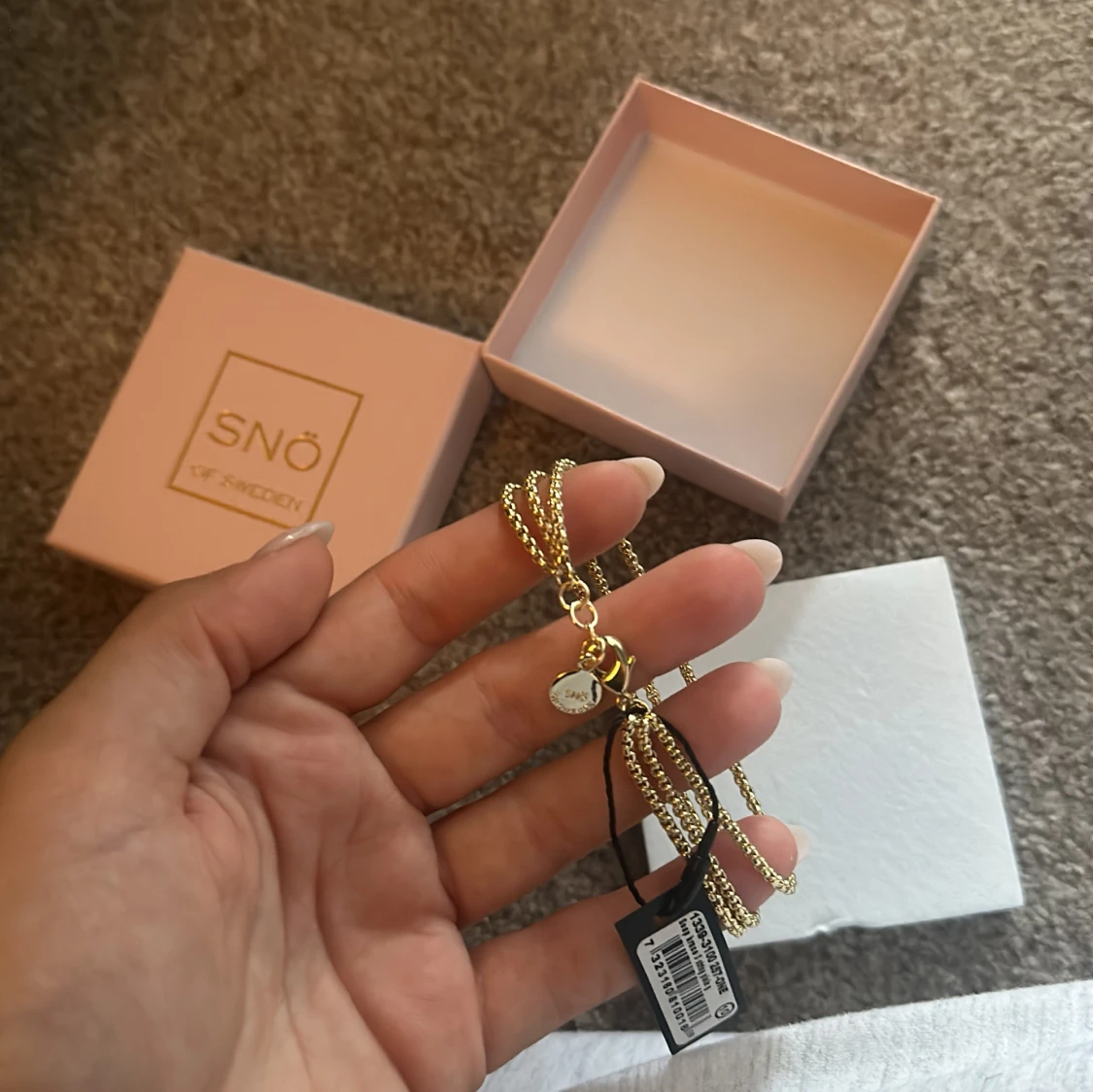 Stilrent halsband i guldton från SNÖ of Sweden. Den är helt oanvänd, guld doppad.