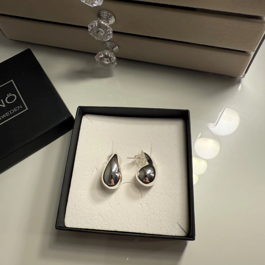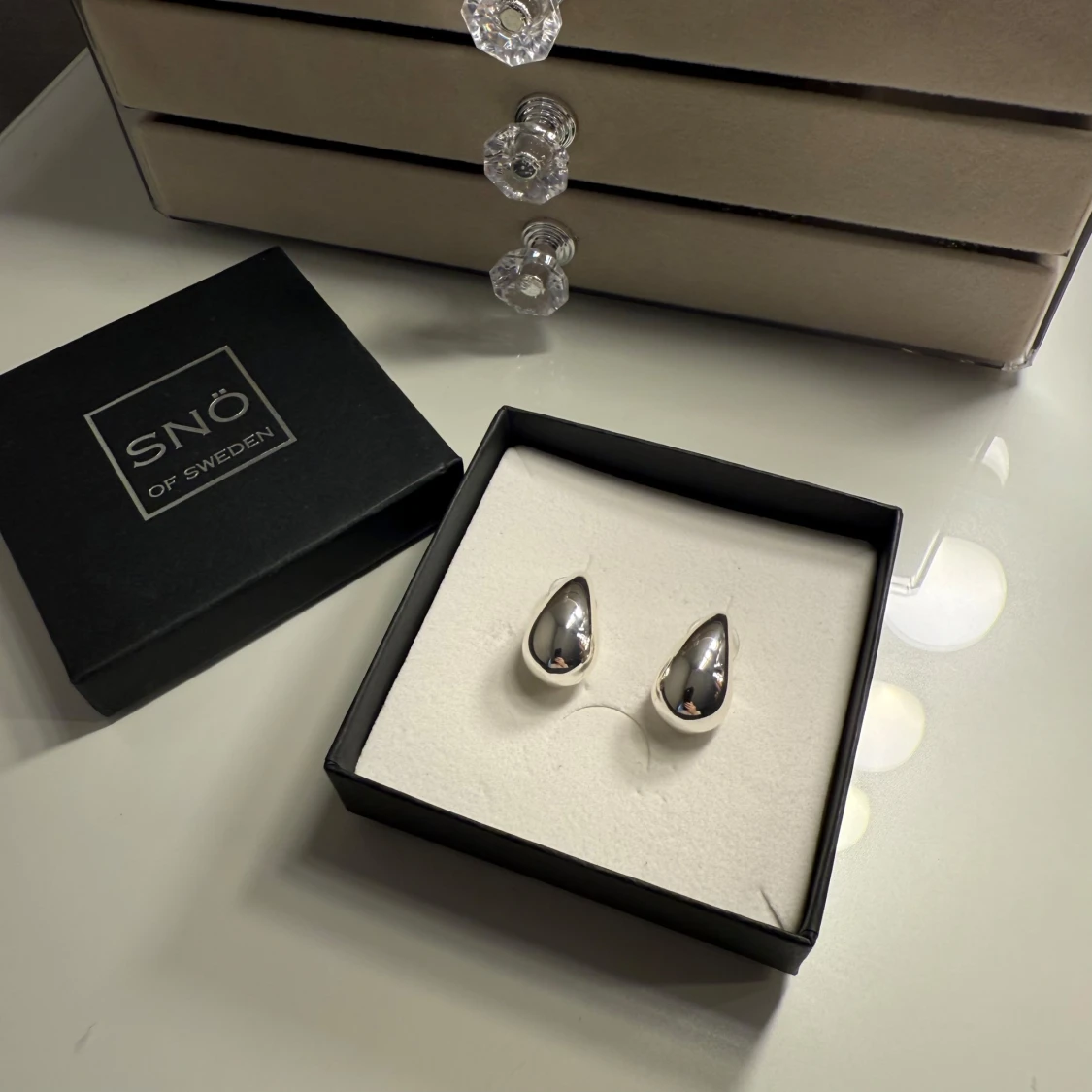 Oanvända silvriga droppörhängen från Snö of Sweden. I originalförpackning.