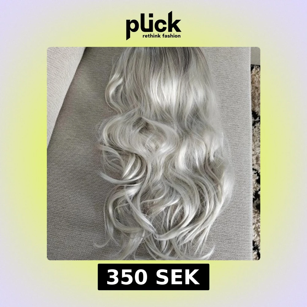 Säljer en lång, vågig peruk i en snygg silverfärg. Perfekt för att ändra stil utan att färga håret. Peruken har en justerbar insida för bättre passform. Lätt att ta på / av peruken Hög kvalitet Lång Heat resistant Lätt att kamma 140%(Extra Thick ) Aldrig använd!!!