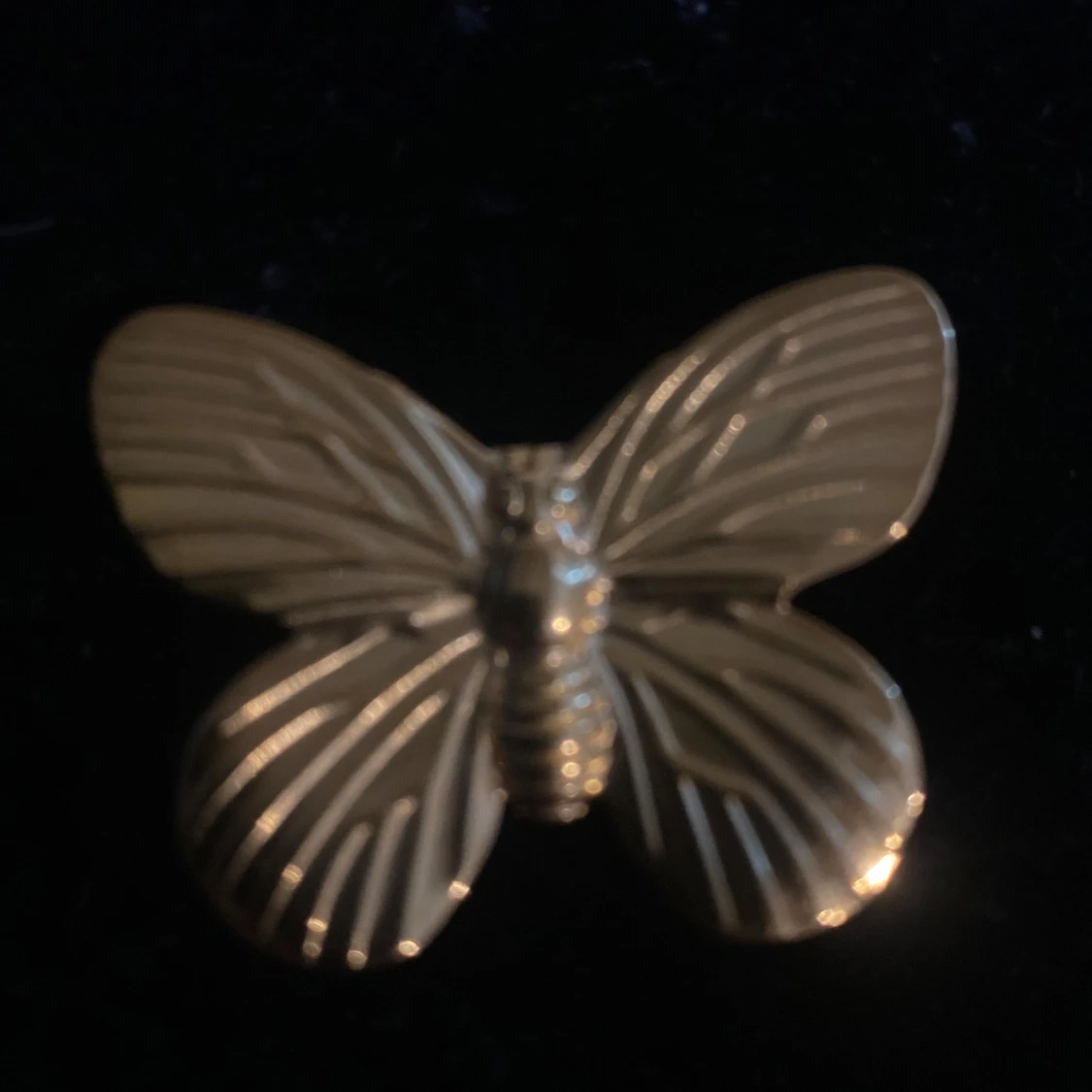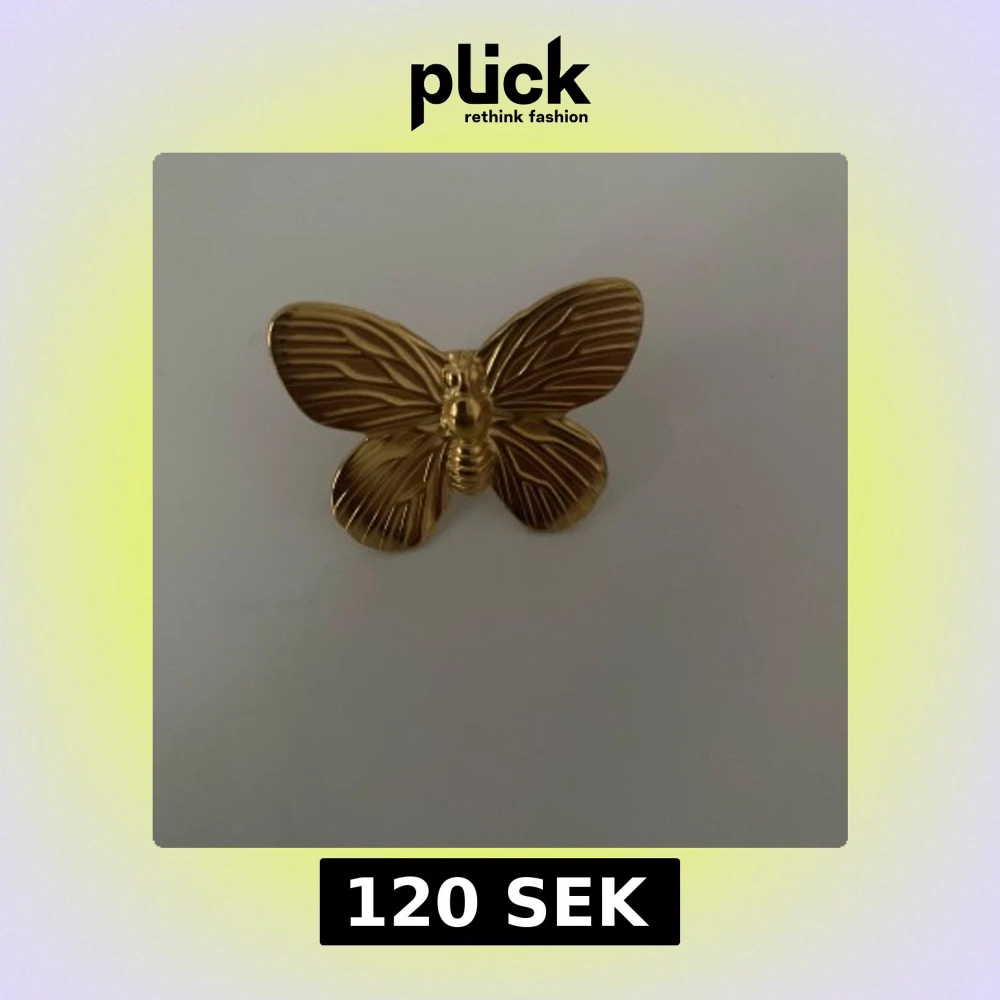 Cool ring i guldfärg formad som en fjäril med detaljerade linjer på vingarna. Perfekt statement piece för dig som vill sticka ut och addera lite extra till din look. Fjärilen är stor och syns verkligen, passar dig som gillar unika accessoarer.