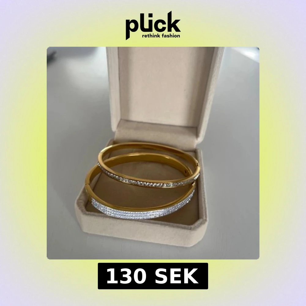 Två eleganta armband i guldfärg och rostfritt stål med glittrande stenar. Perfekta för att ge en lyxig touch till din outfit. Armbanden kommer i en stilren ask. Armbanden är helt nya och oanvända!
