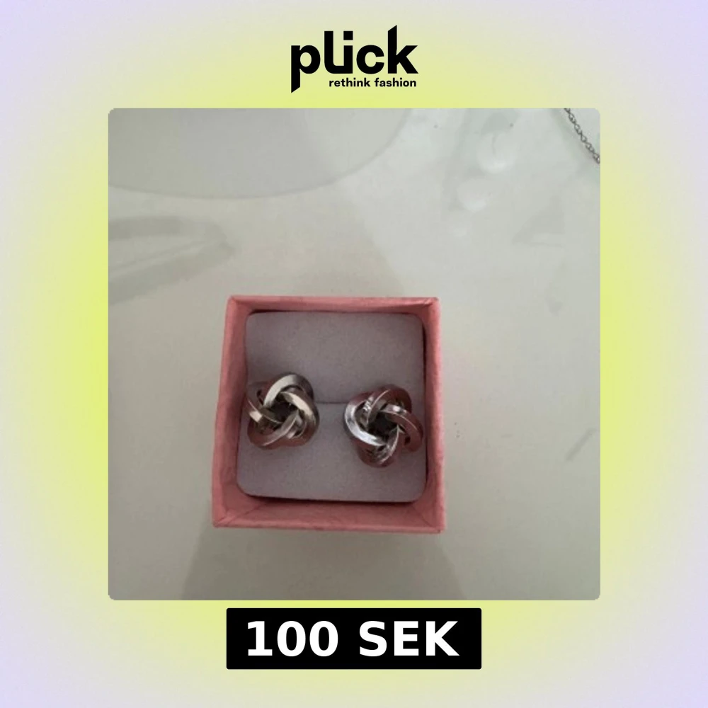 Säljer ett par stilrena silverfärgade örhängen med en unik knutdesign. Perfekta för att ge en elegant touch till din outfit. De är lätta att bära och passar till många olika stilar. Obs! Jag rengjorde örhängena efter att andra bilden var tagen! Säljer eftersom att jag är en guldtjej. Nypris: 250kr