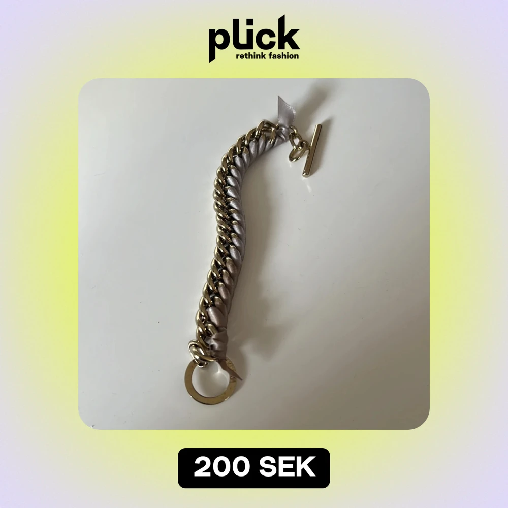 Säljer ett stilrent och modernt armband i guldfärg . Det har en chunky kedjedesign och stängs med en T-bar låsning. Perfekt för att ge en extra touch till din outfit, oavsett om det är till vardags eller fest.