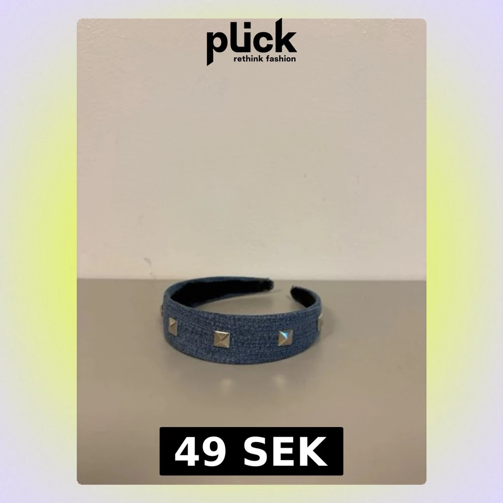 Blått diadem av återvunna jeans med silvriga nitar, med silke inuti!💙 Diademet är ca 12 cm diameter🌟