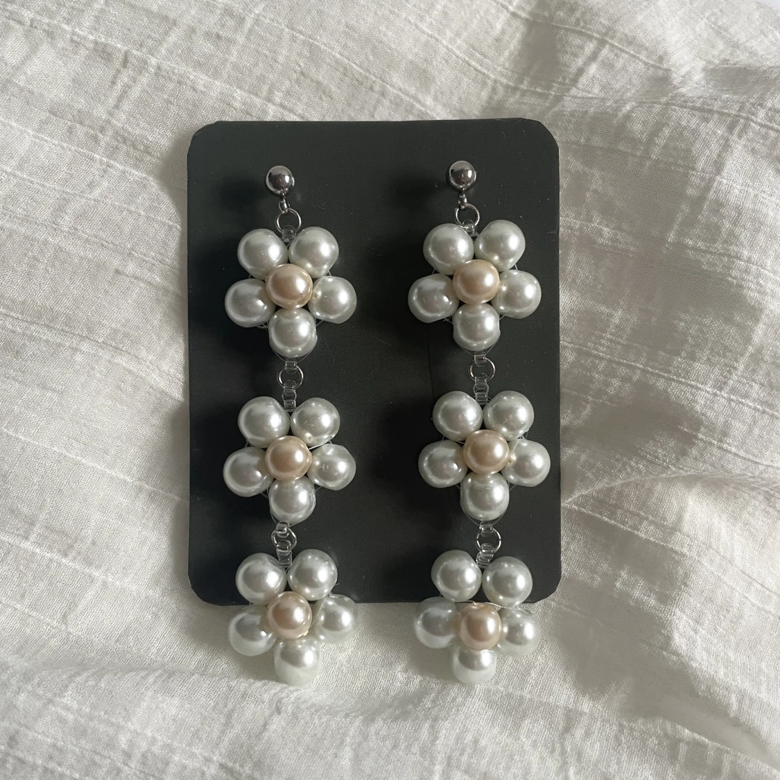 Helt nya, handgjord av mig! Ca 8cm långa. Stiftet är gjort av rostfritt stål. Örhängena är ganska tunga så håll det i åtanke!
