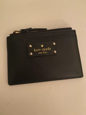 Kate Spade skinn korthållare i fint skick, knappt använd, i svart, har ett fack med dragkedja och tre frack för kort.