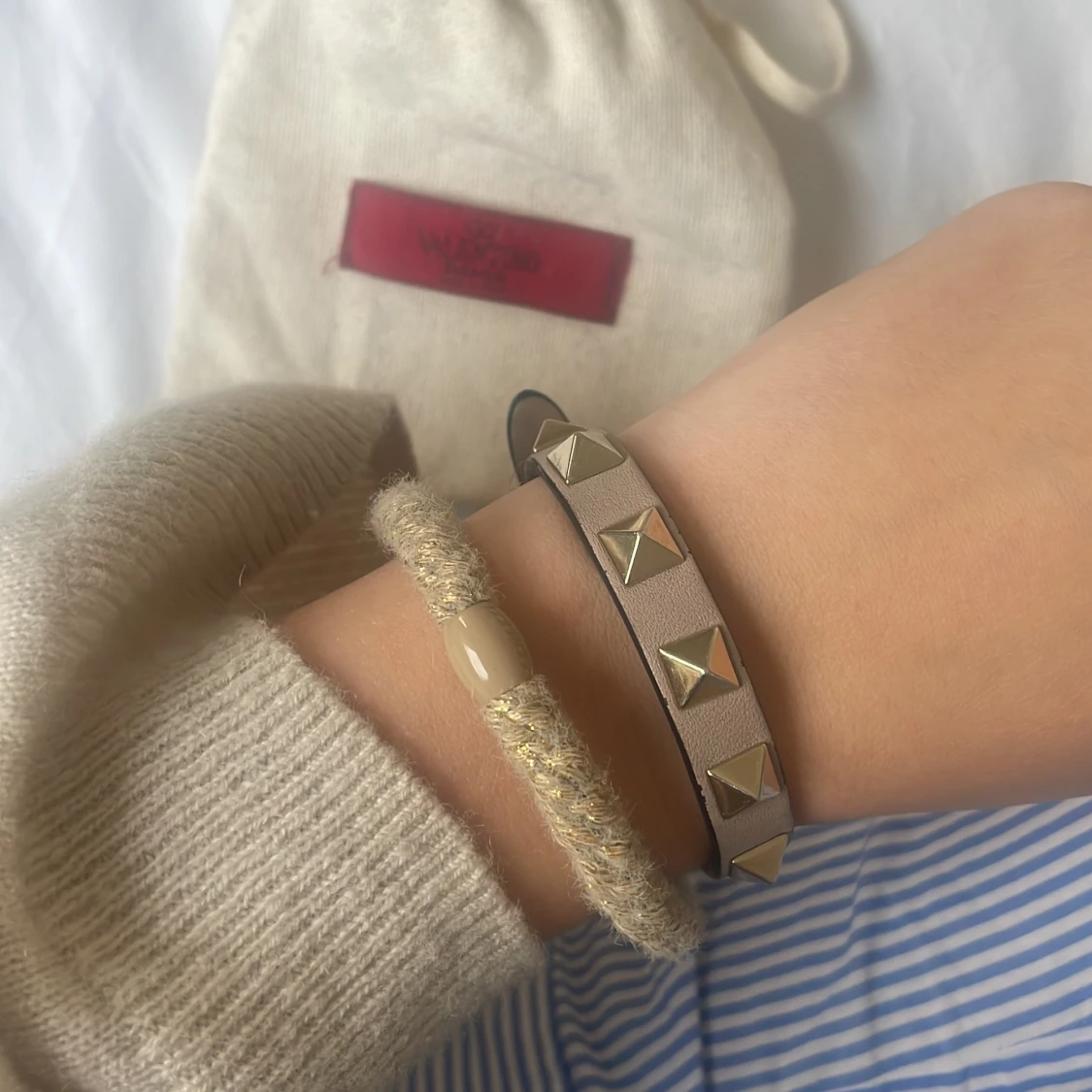 Säljer detta fina valentino armband. Köpde de för 2 år sedan men fortfarande bra skick. Dock lite defekt under där spännet sitter. Köpt för 3000 säljer för 2000