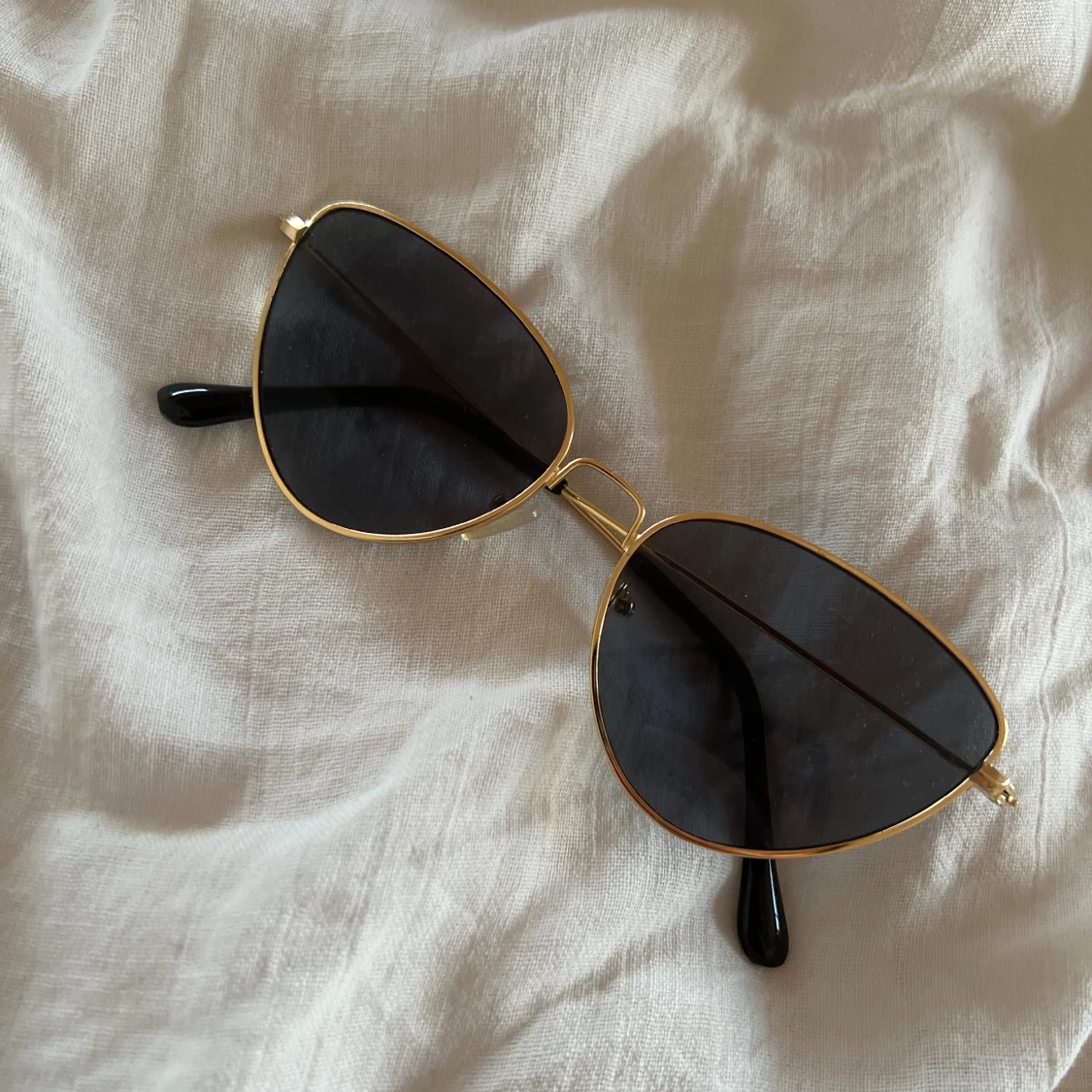 Cateye solglasögon med guldiga bågar, sparsamt använda!