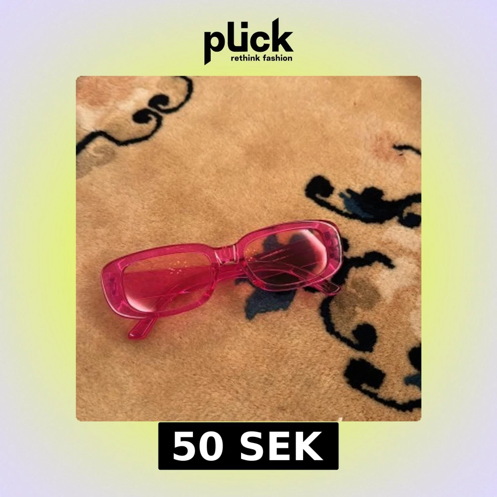Säljer ett par trendiga solglasögon i genomskinlig rosa plast med rektangulära bågar. Glasen är också rosa-tonade och bågarna har en stilren, modern look. Perfekt accessoar för att lyfta din outfit.