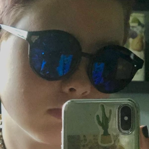 Svarta solglasögon med blått glas! passar inte riktigt min stil och är sällan använda. köparen står för frakt och frakten kan variera✨