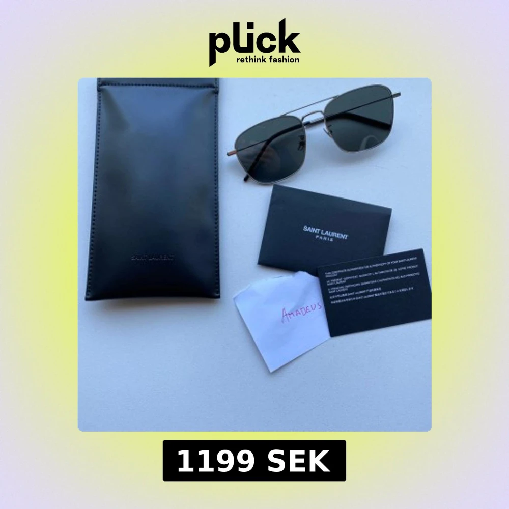 Nypris 3190kr. Inköpta på synsam. Aldrig använda. Snygga solglasögon från Saint Laurent med rektangulära svarta glas och tunn silverfärgad metallbåge. Klassisk och stilren design med svarta skalmar. Perfekt accessoar för att lyfta din look.