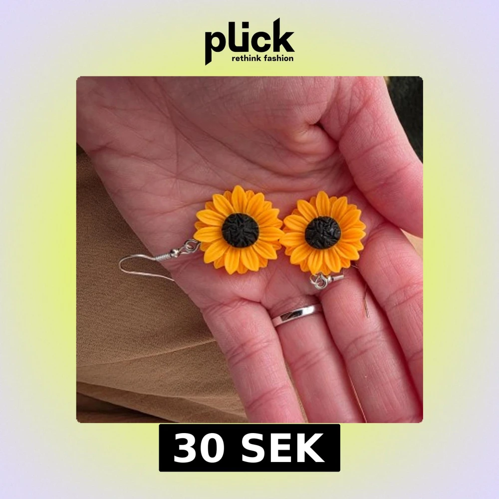 Charmiga örhängen formade som solrosor med gula kronblad och en svart mitt. Perfekta för att ge en färgglad touch till din outfit. De har en enkel krok för enkel användning.
