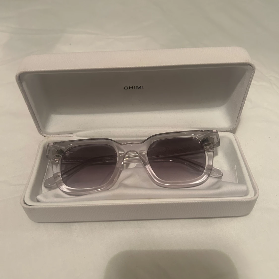 Säljer ett par stilrena glasögon från CHIMI. Kommer med original vit hård förvaringsbox och vit tygpåse med dragsko. Perfekt för dig som gillar minimalistisk design och snygga accessoarer.