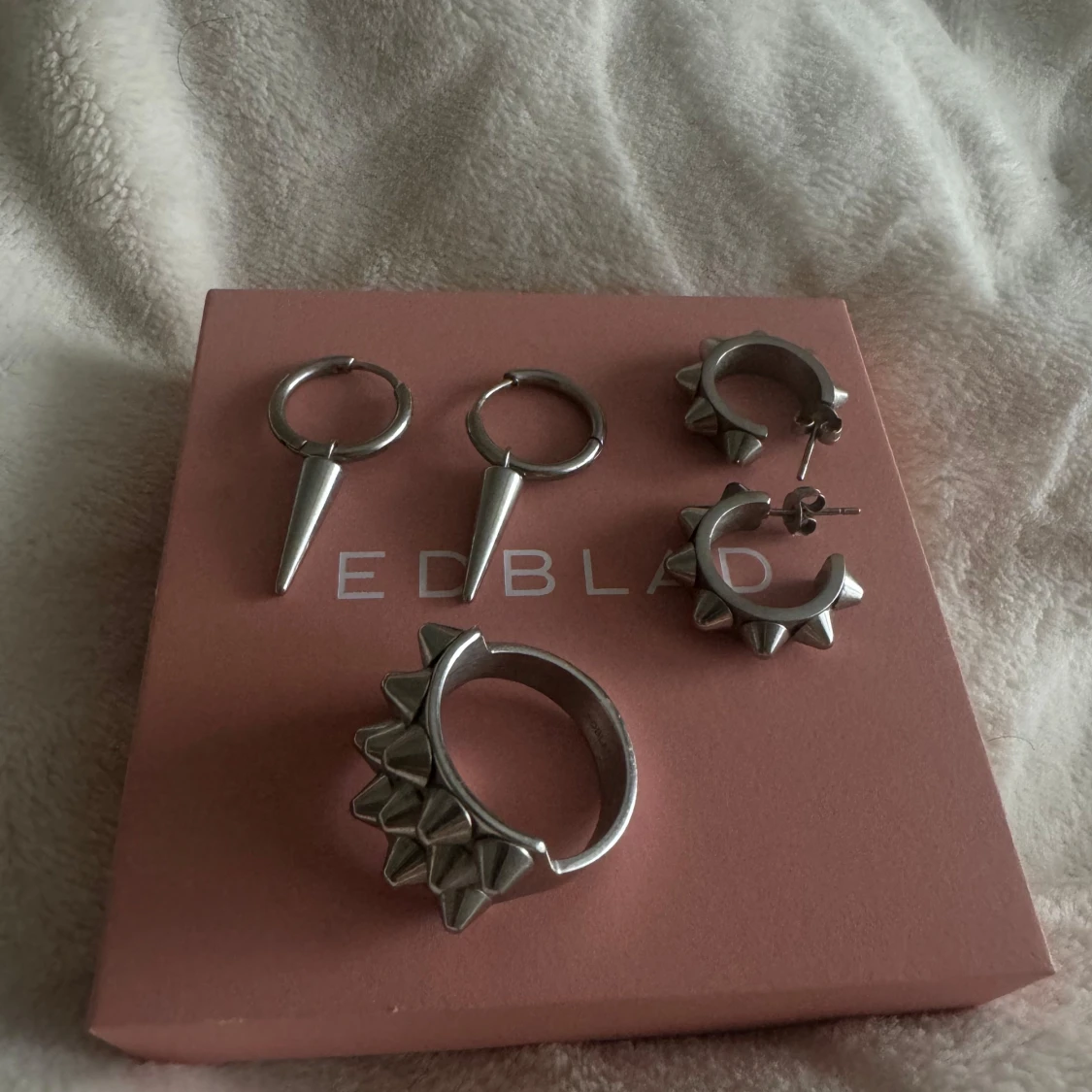 Säljer nu mina silvriga Edblad smycken då jag bytt till guld. Dom är i ny skick då dem inte kom till användning mer än fåtal gånger samt tvättade innan utskick. Storleken på ringen är 18,5 (L). Vill man köpa alla som ett sett blir det 500kr. Annars 200kr per smycke.