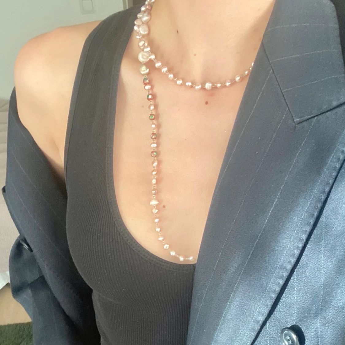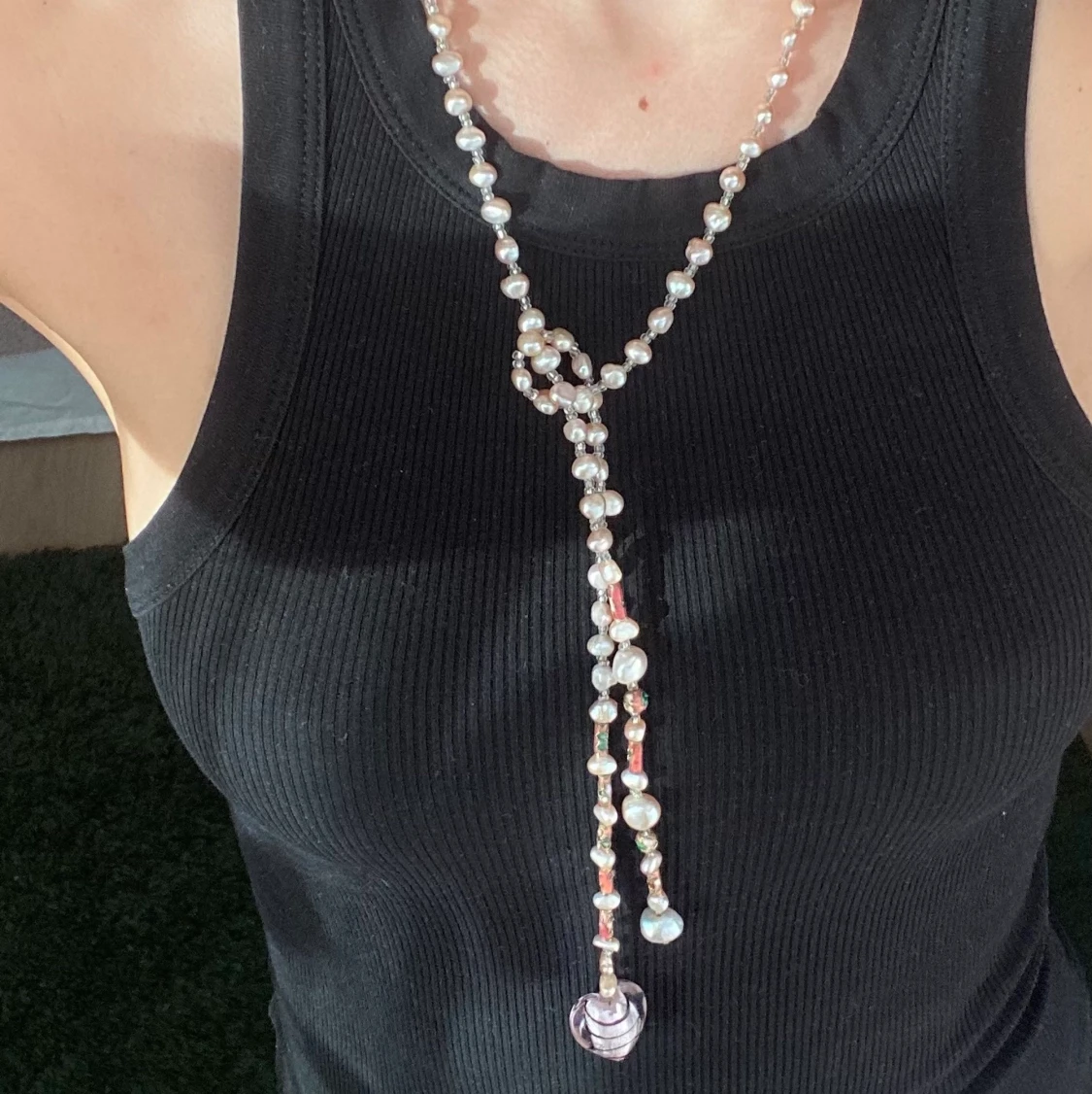 Ett otroligt snygg och unikt pärlhalsband med fina detaljer, går att styla på flera olika sätt🤩