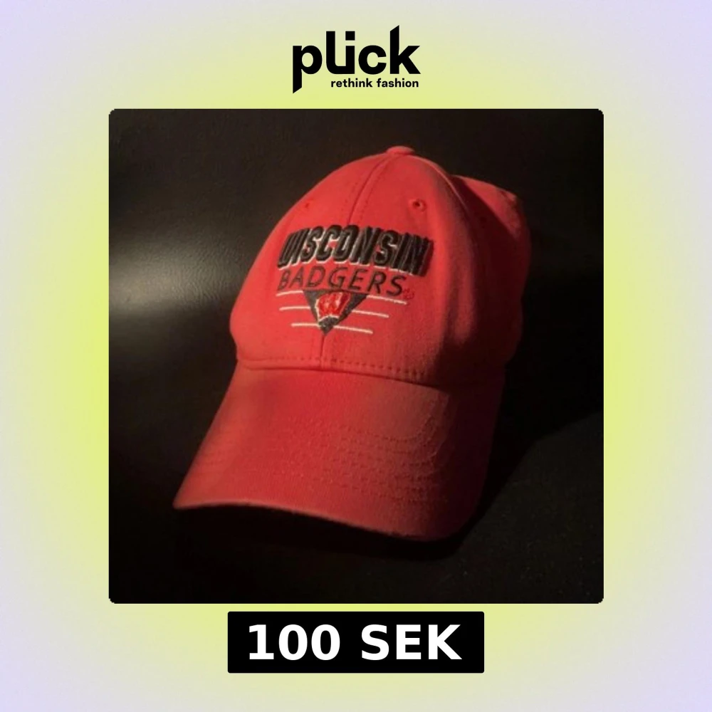 Röd keps med broderad text och logga för Wisconsin Badgers framtill. Justerbar baktill för bra passform. Perfekt för dig som vill visa ditt stöd för laget.