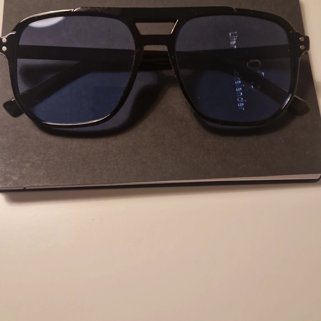 Snygga svarta solglasögon med en klassisk aviator-stil och blåtonade linser. De har en dubbel brygga och smala skalmar som ger en stilren look. Perfekta för soliga dagar!