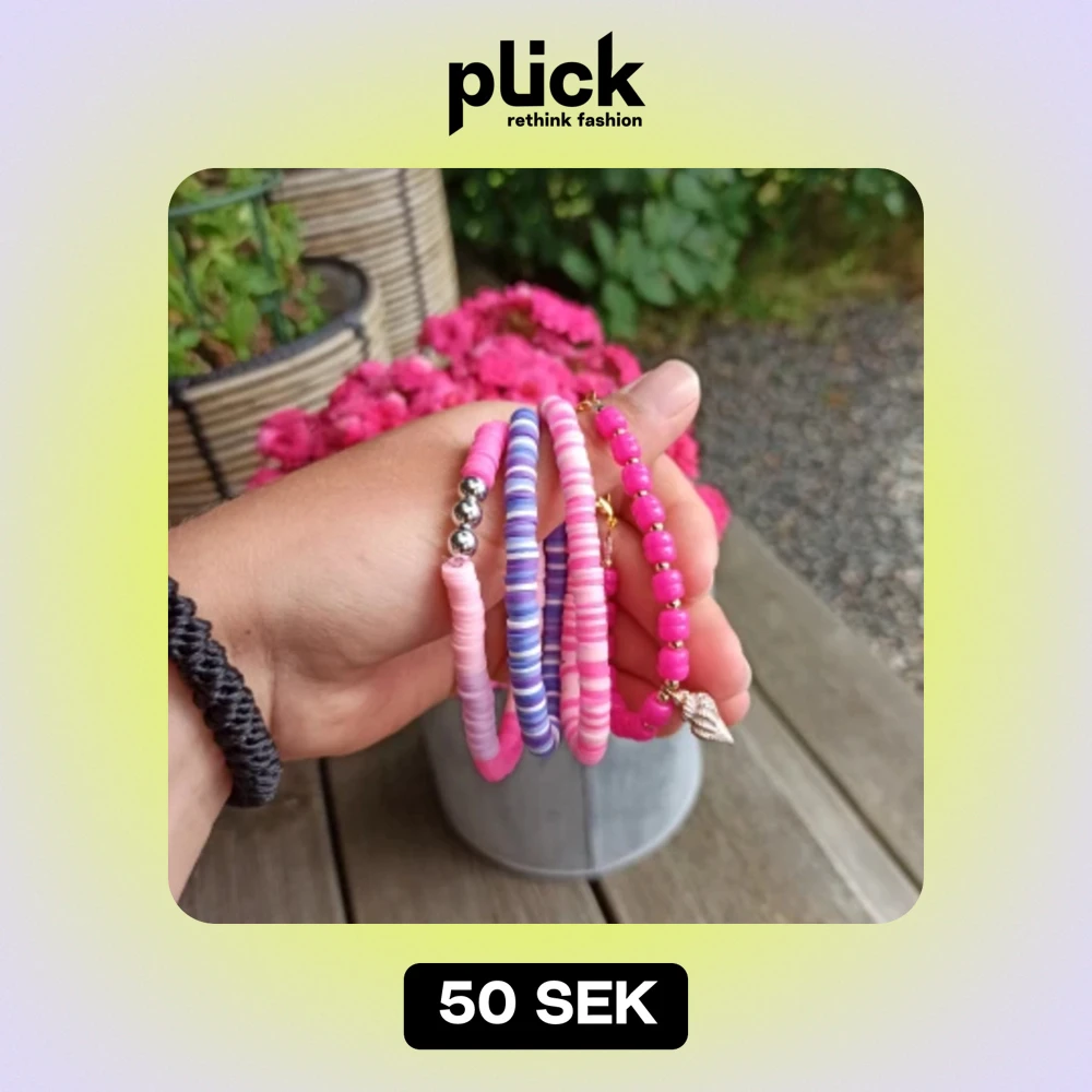 Ett set med rosa/lila armband, säljs ut under sommar rean.