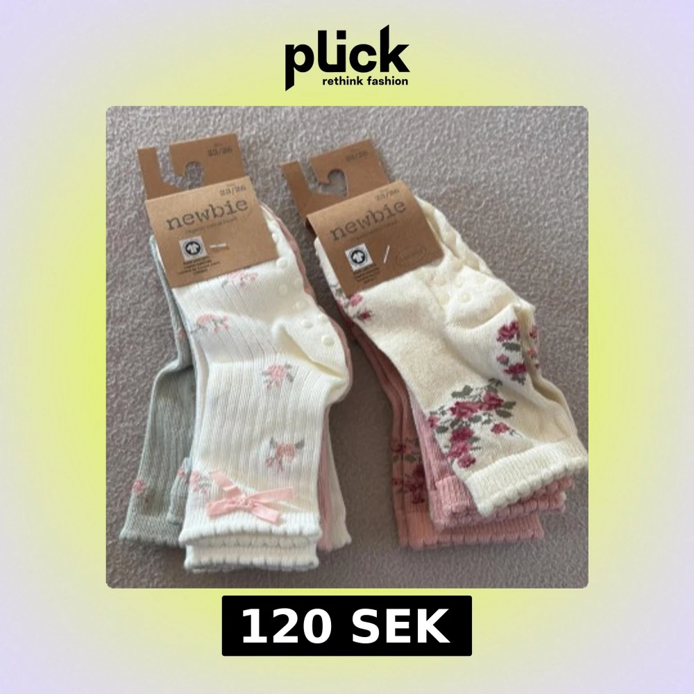 Charmiga barnstrumpor från Newbie i mjuka pastellfärger. Setet innehåller strumpor i beige, rosa och grå nyanser med blommönster och en söt liten rosett på en av dem. Perfekta för att ge en gullig touch till barnens outfit.