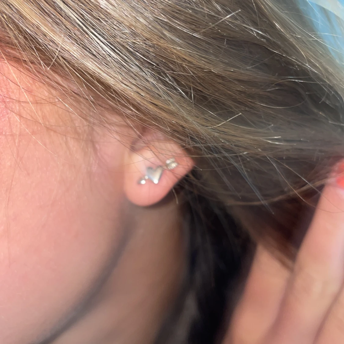 Väldigt sött örhänge i form av ett hjärta med en pil! Från l8hasselbald använt ett få tal gånger ca 2-3! Säljer pågrund av att jag inte är silver person längre// vida