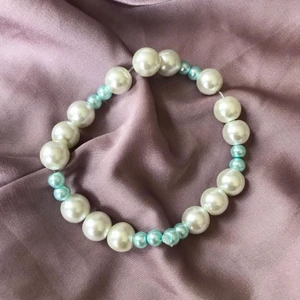 Detta armband är gjort av vaxade glaspärlor och kostar 79kr. Den har inget knäppe eftersom tråden är elastisk.