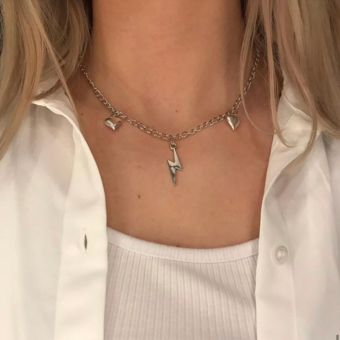 Halsband i silver med blixt och hjärtan #002