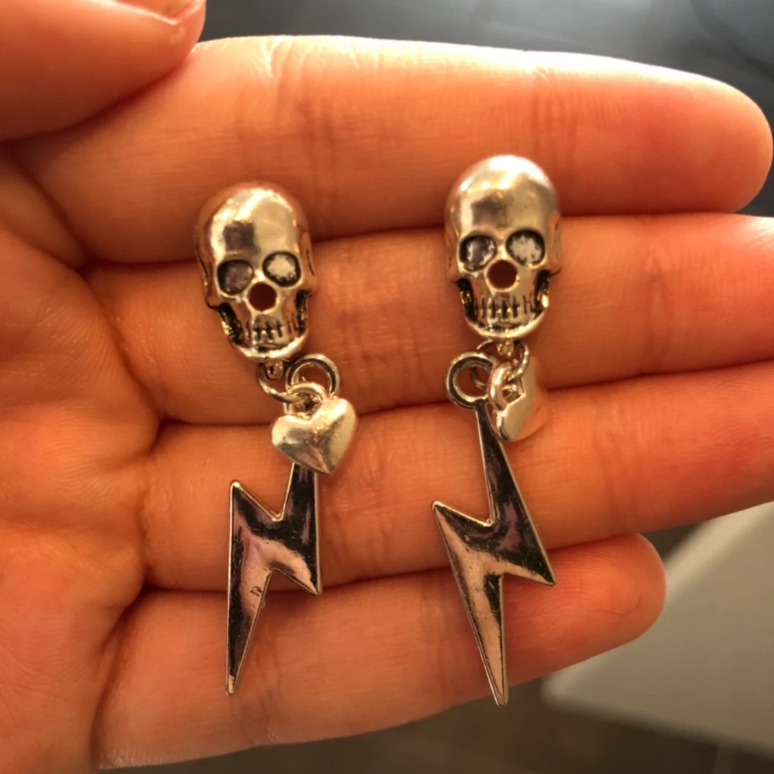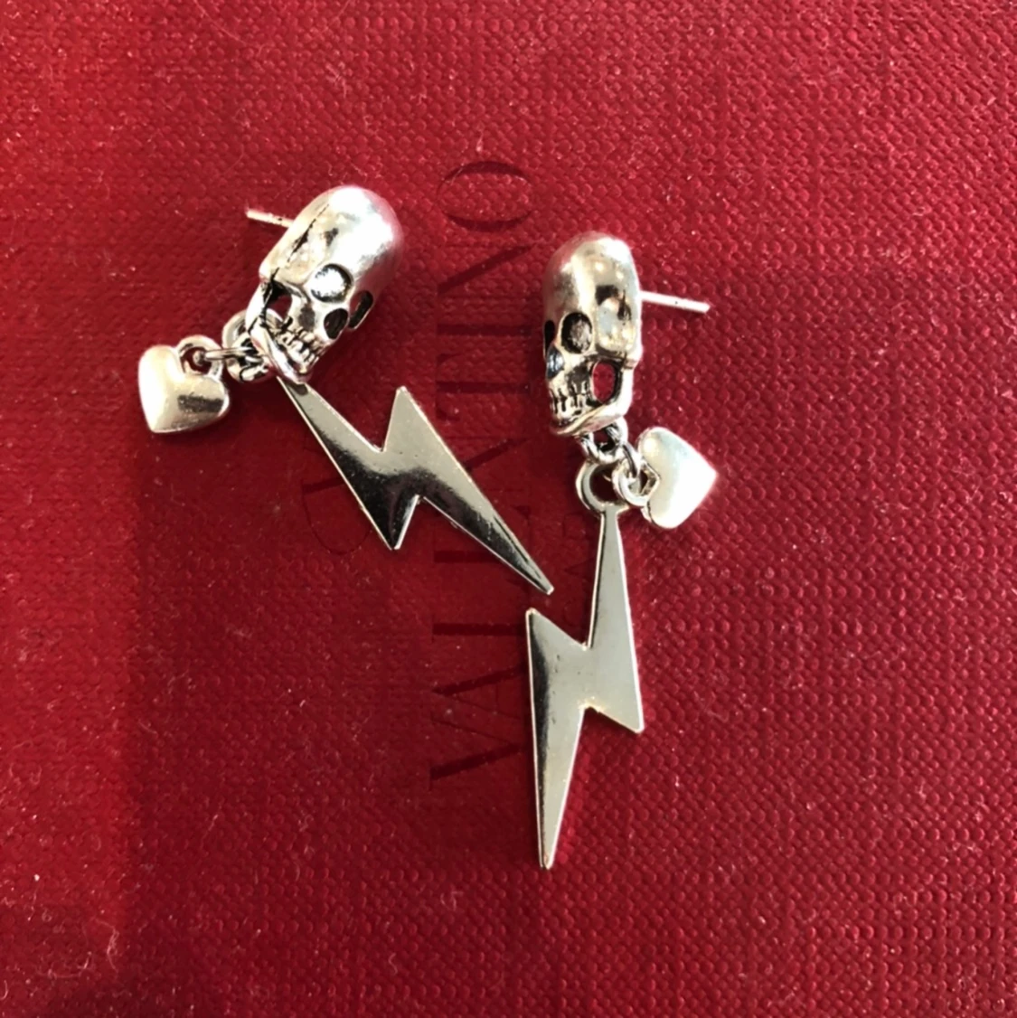 Supercoola döskalle X hjärtan örhängen! Självklart oanvända. 85kr (frakten är inkluderad i priset) pluppar kommer ej med. hör av er vid intresse eller funderingar!💓💓🤩