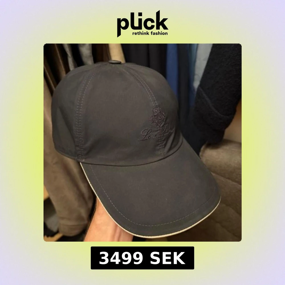 Snygg navy keps från Loro Piana med broderad logga framtill. Utsidan är slät och stilren, insidan har ett rutigt mönster i beige, rött och grönt. Skärmen är beige undertill och kepsen har elastiskt band baktill för skön passform. Perfekt för dig som gillar exklusiva accessoarer.