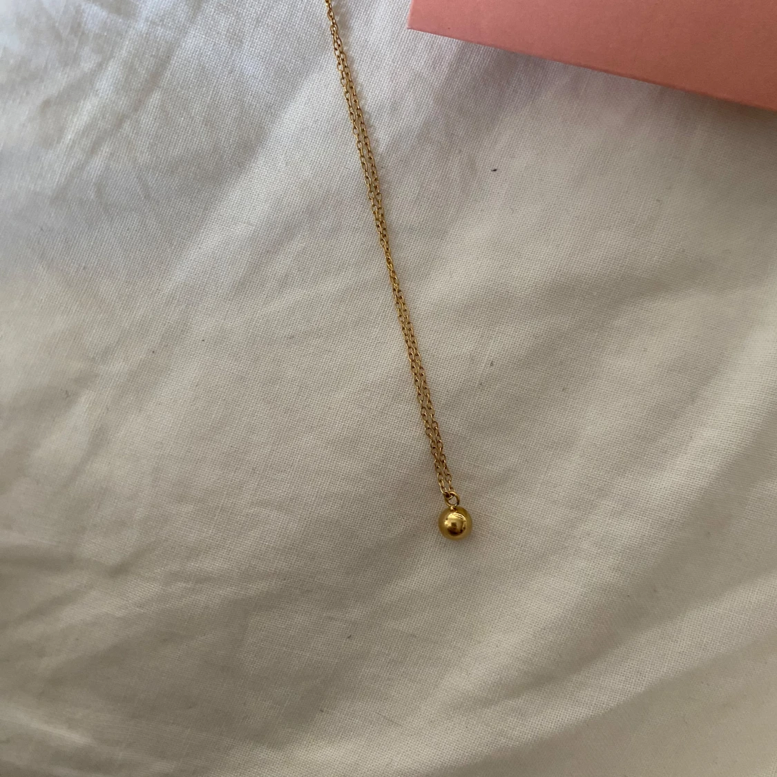 Snyggt och stilrent halsband från Edblad i guldtonad metall. Kedjan är tunn och har en liten rund kula som hängsmycke, perfekt för dig som gillar minimalistiska smycken med en touch av elegans. Kommer i originalförpackning.