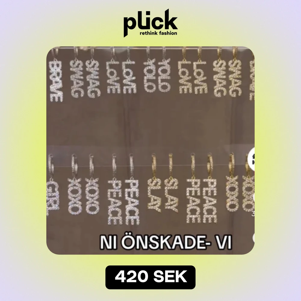 Säljer dom här guldiga örhängena där det står ”peace”. Köpte dom från ioaku för 599🥰 Dom är använda ca 2 gånger💕