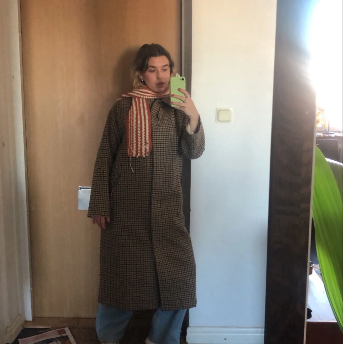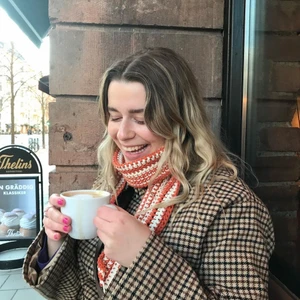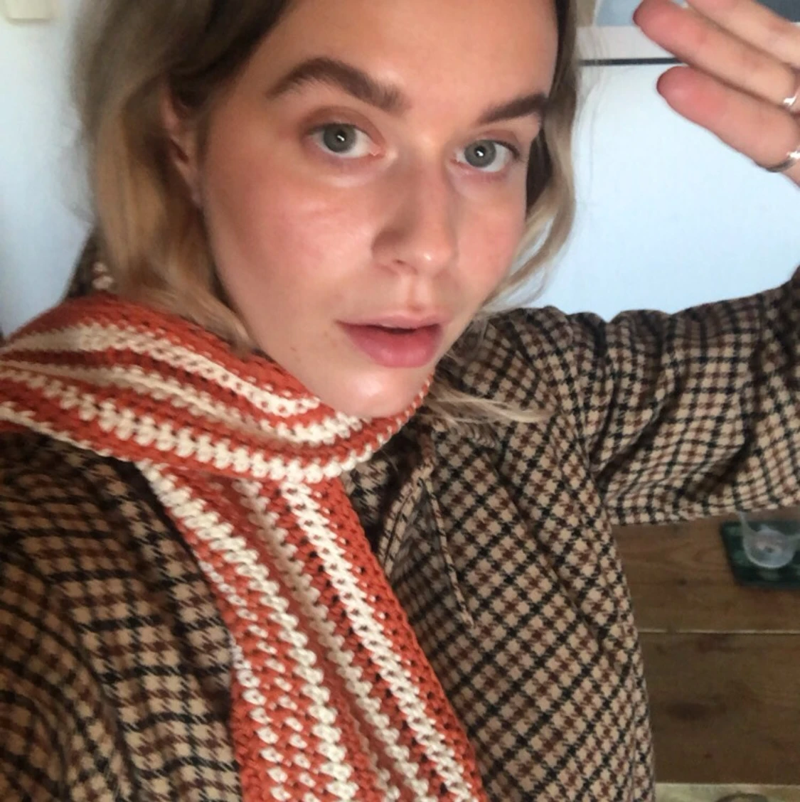 Hemvirkad fin lätt vårhalsduk i en dov orange och krämvit 💕🌼