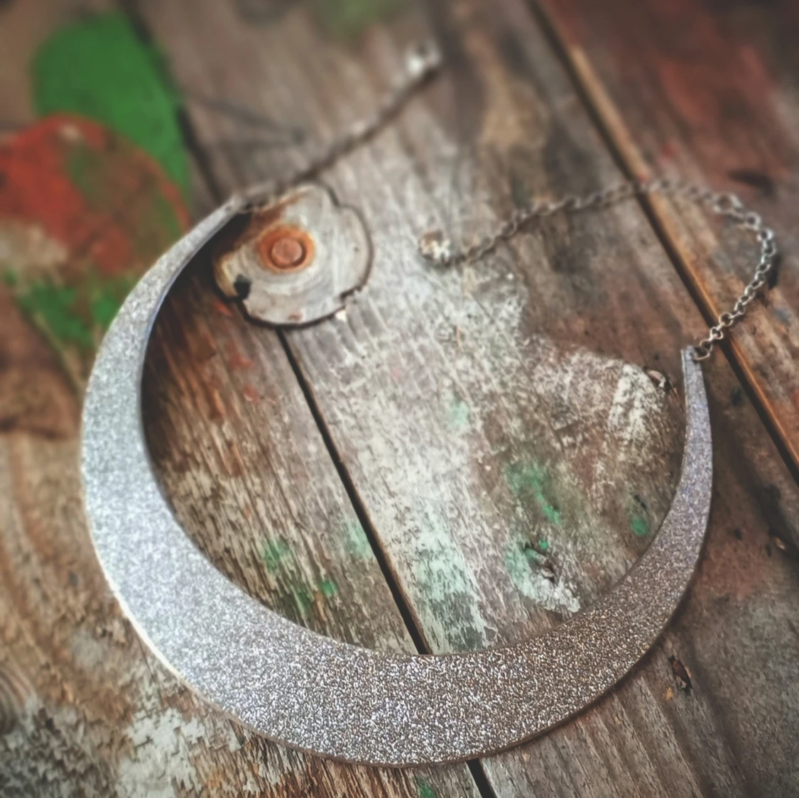 Snyggt och modernt halsband i en glittrig silverfärg. Designen är enkel men elegant, perfekt för att ge en extra touch till din outfit. Halsbandet har en justerbar kedja för att passa olika längder.