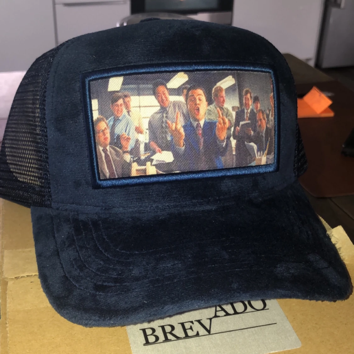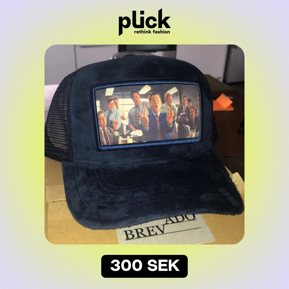 Stilren ny (nästan ny) velvet keps från Brevado med ett unikt tryck av en grupp människor som gör peace-tecken. Kepsen har ett nätmaterial på baksidan för bättre ventilation och en justerbar rem för perfekt passform. Perfekt för en avslappnad stil eller som statement piece!
