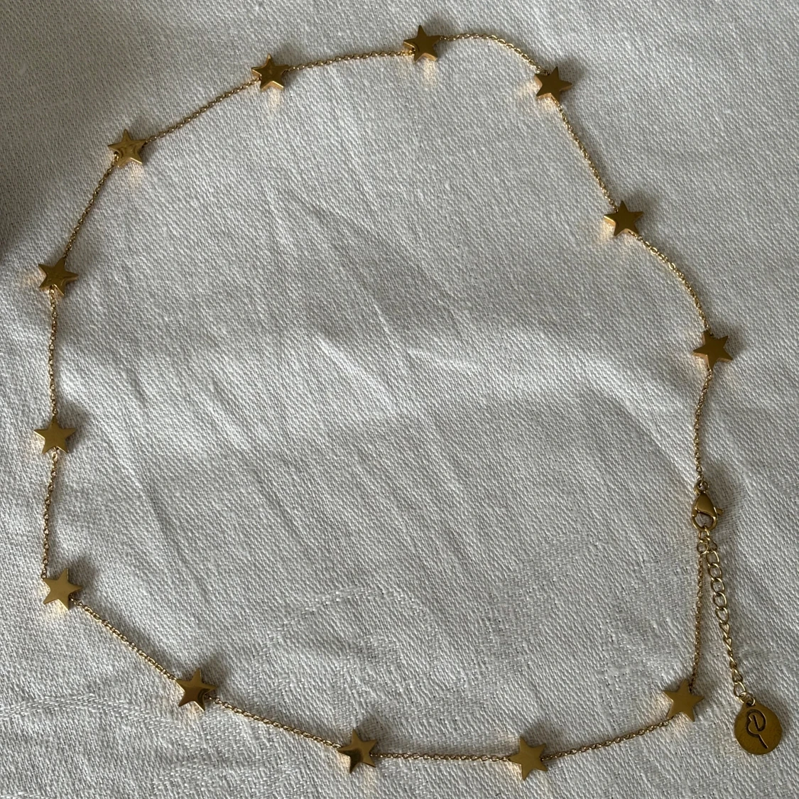 Super fint halsband med stjärnor på i guld💕 Säljer pga att det tyvärr inte kom till användning. Inga defekter. Kontakta vid intresse och bilder❤️ Ask medföljer!!