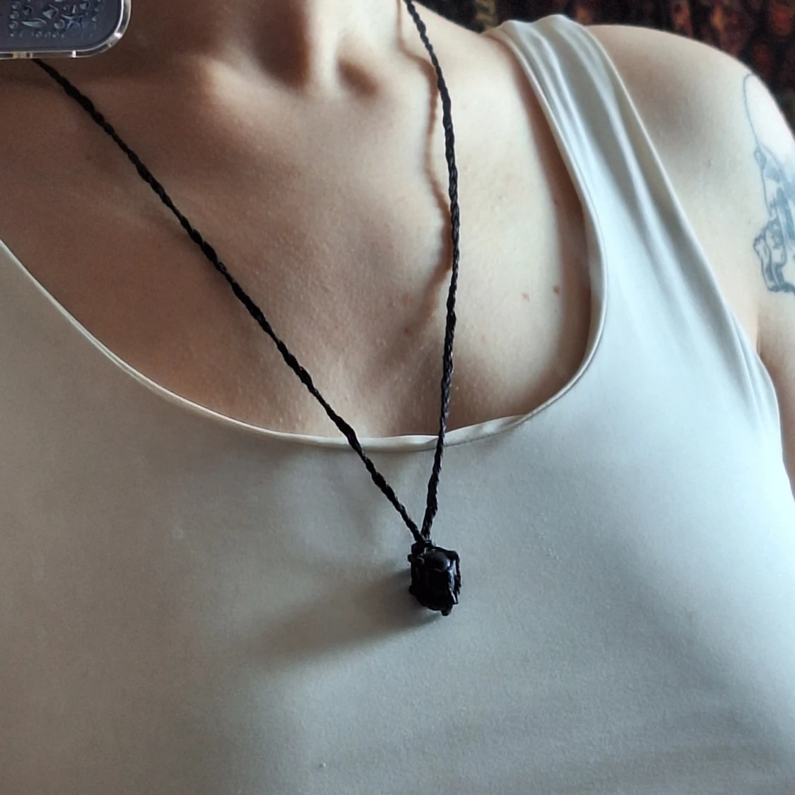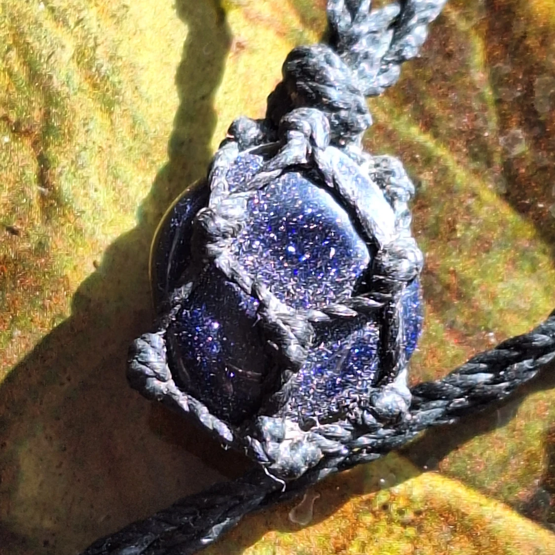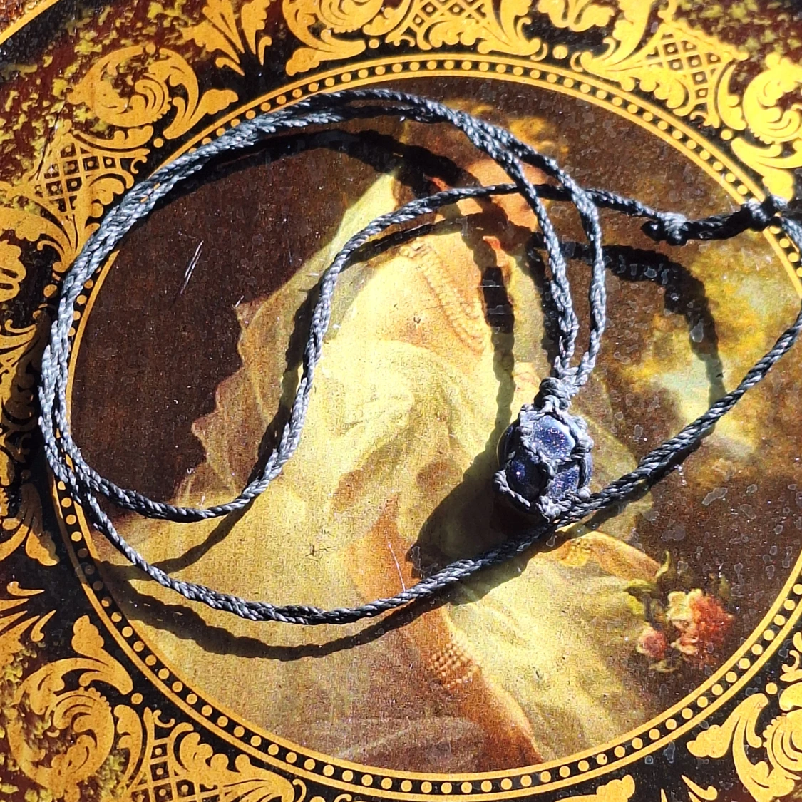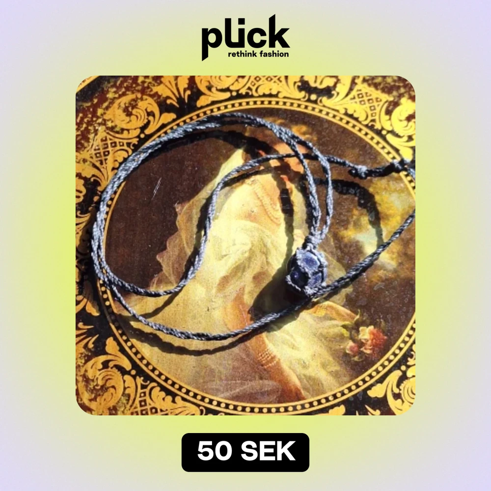 Marinblå sten med flätat band som köptes i Brasilien. Justerbart band!