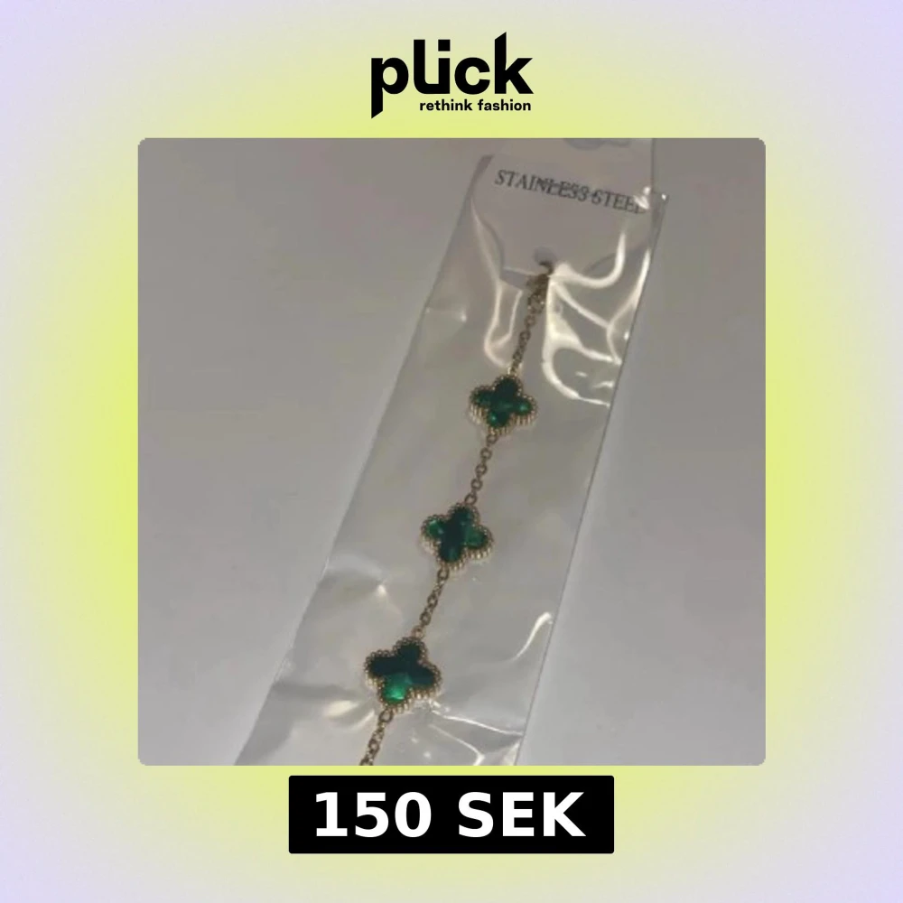 Snyggt armband doppad i 18k med gröna klöverformade hängen. Rostfritt och perfekt för dig som vill ha något unikt och färgglatt på handleden.