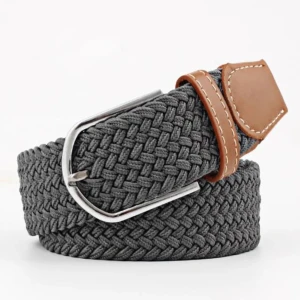 Stretchbälte dark grey Elastiskt bälte som passar många storlekar. Omkrets upp till 110 cm. Material canvas med änddetaljer i brun skinnimitation. Bredd på bältet 3,3 cm. Färg mörkgrå.