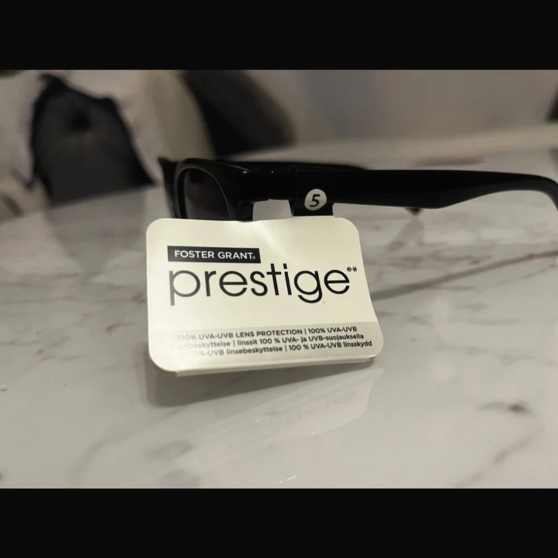 Snygga svarta solglasögon från Foster Grant med en klassisk design. De har en lätt oversized passform och mörka linser som ger 100% UVA/UVB-skydd. Perfekta för soliga dagar!