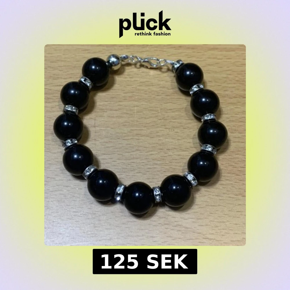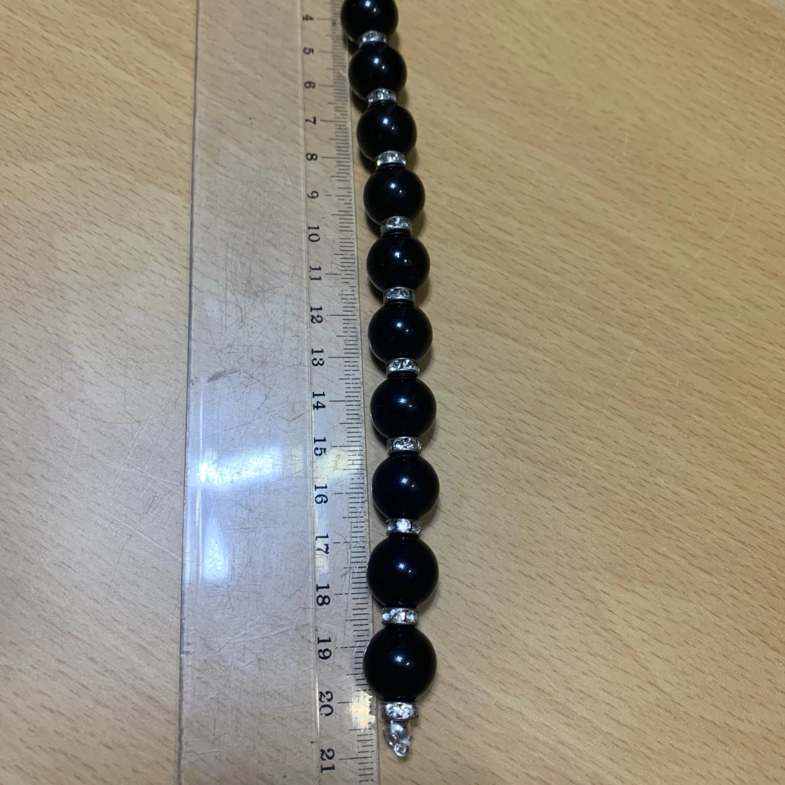 This bracelet has black stones probably onyx. It is a bit heavy. Good condition.