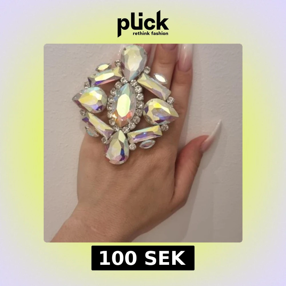 Superstor statementring med stora, multifärgade kristaller i olika former och gnistrande stenar runtom. Ringen har en riktigt glittrig och iögonfallande look, perfekt för dig som vill sticka ut. Säljs utan originalförpackning.