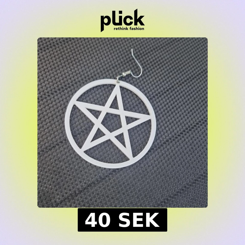 Coolt örhänge i vit plast med en stor pentagramformad design. Cirka 6 cm i diameter. OBS! endast ETT örhänge! Mycket lätt och bekvämt att ha på sig.