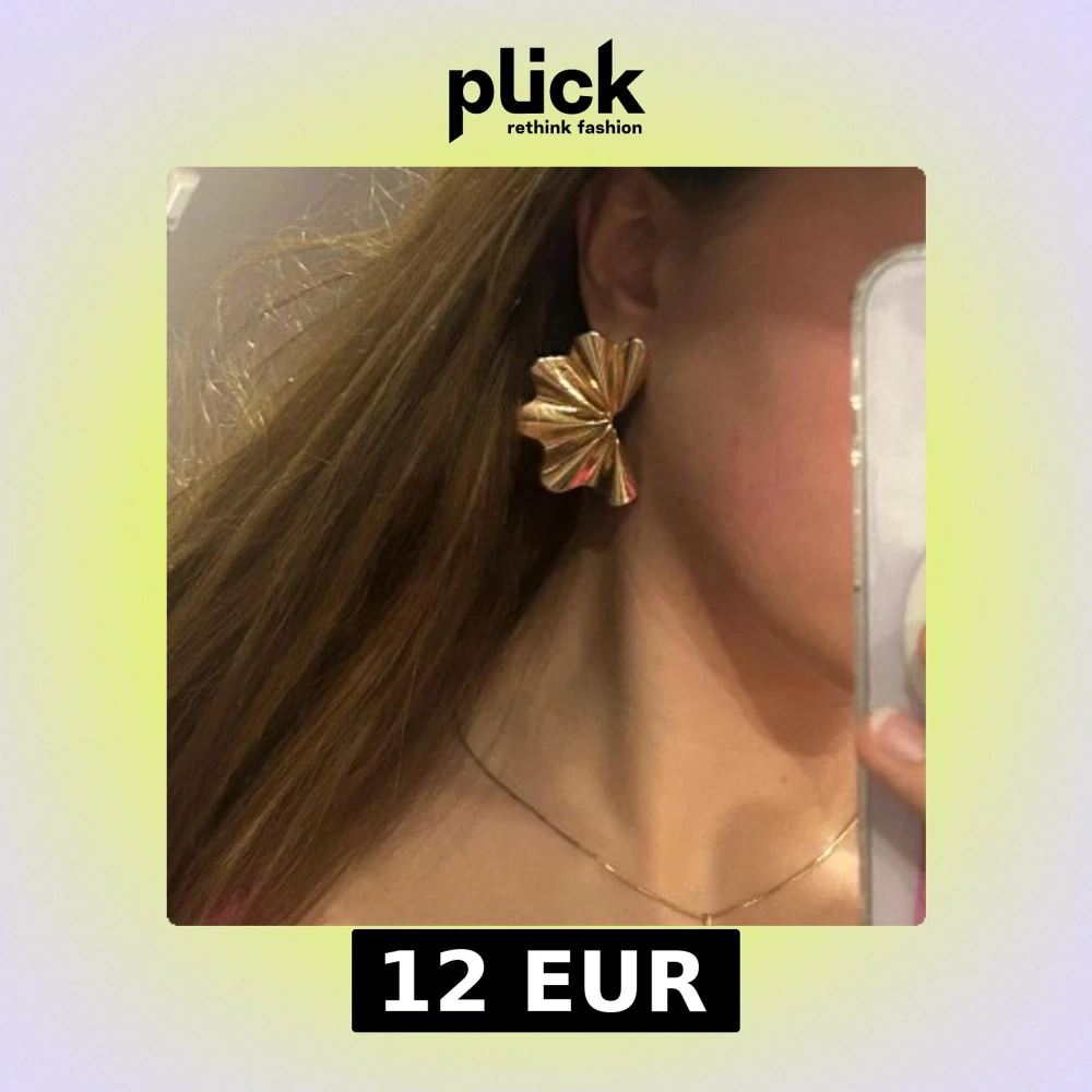 Säljer ett par stora, statement örhängen i guldmetall med veckad blomform. Perfekta för att lyfta vilken outfit som helst och ger en trendig touch. Lätta att bära och riktigt snygga till både uppsatt och utsläppt hår.