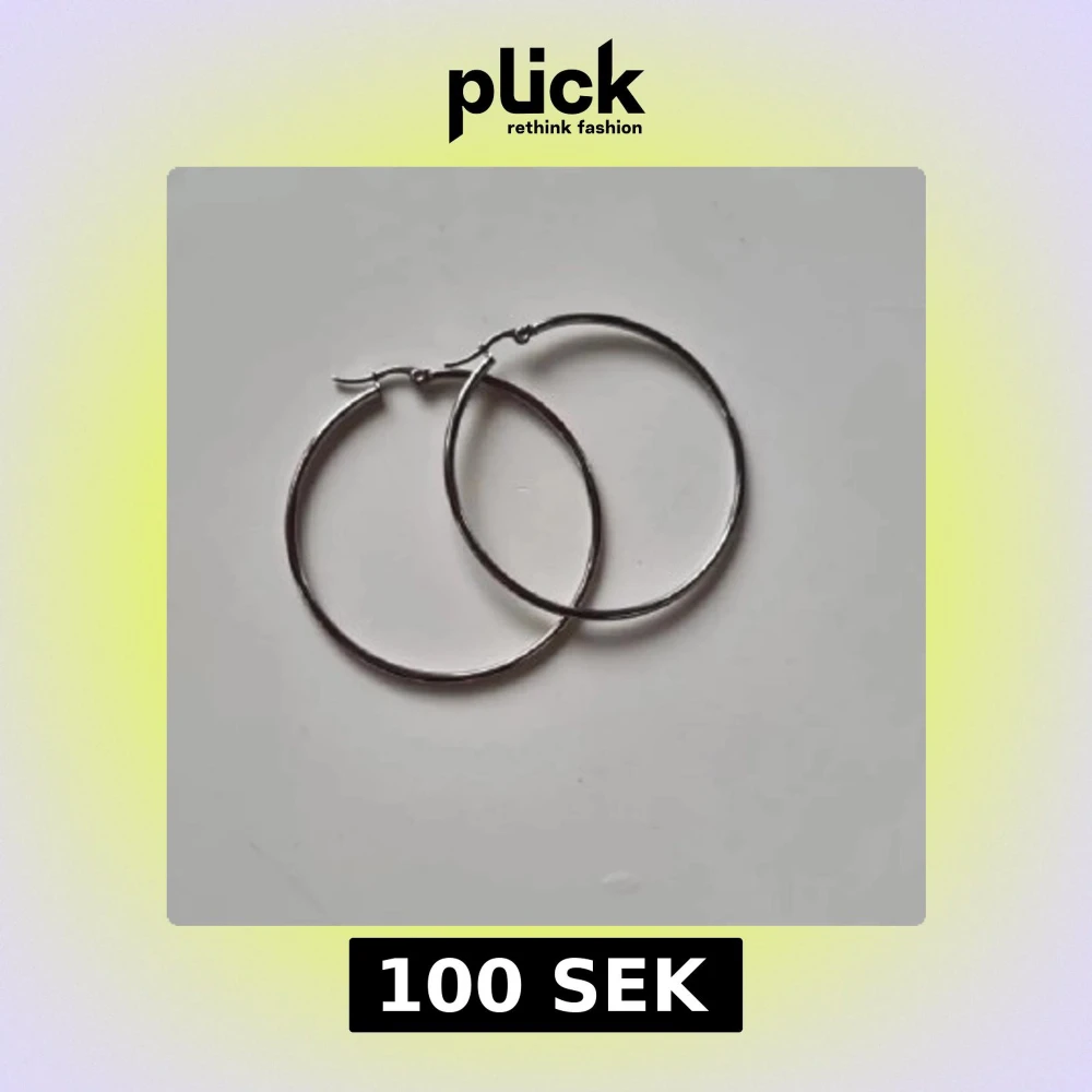 Säljer ett par stora, stilrena hoops / creoler örhängen i silverfärg. Allergivänligt 316L kirurgiskt stål. Aldrig använda.