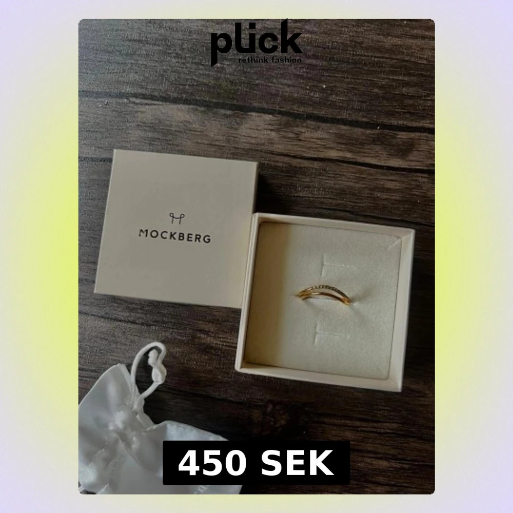 Säljer en elegant Lys Ring från Mockberg i guldpläterad metall. Ringen har en modern, böjd design med två parallella band, varav det ena är dekorerat med gnistrande stenar. Perfekt accessoar för att lyfta din stil och ge lite extra bling.