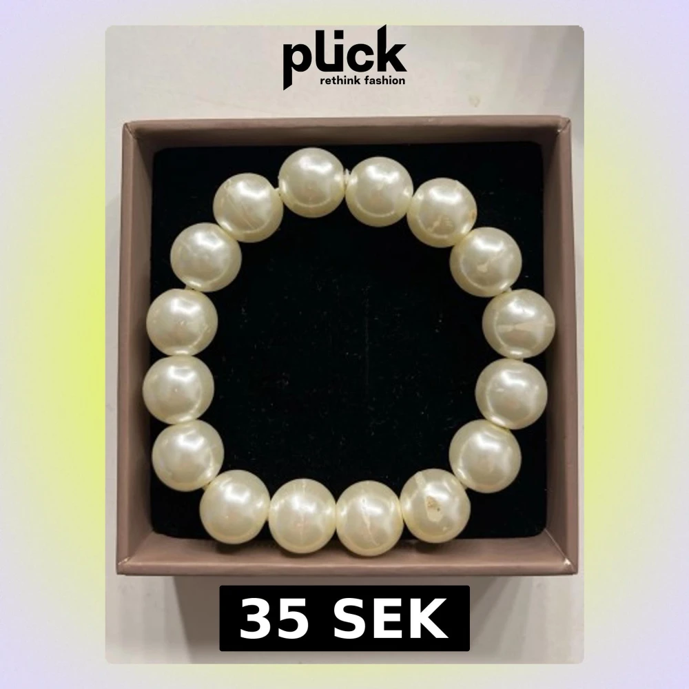 Säljer ett stilrent armband med stora, glansiga vita pärlor. Armbandet är elastiskt❣️