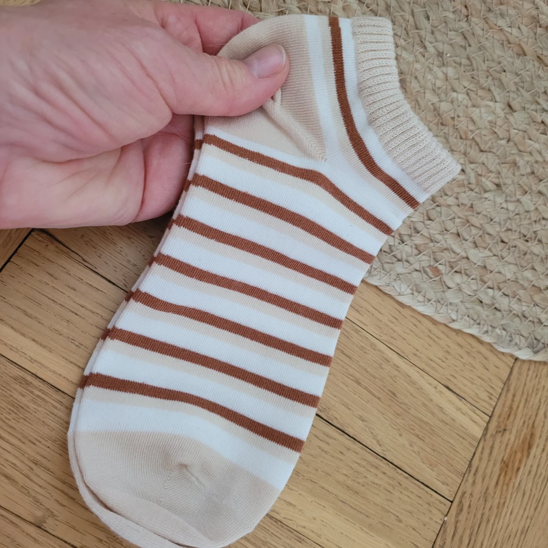 Korta strumpor steps, snygga till sneakers. Randiga beige/ vit/ brun. Nya! Aldrig provade